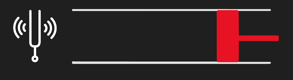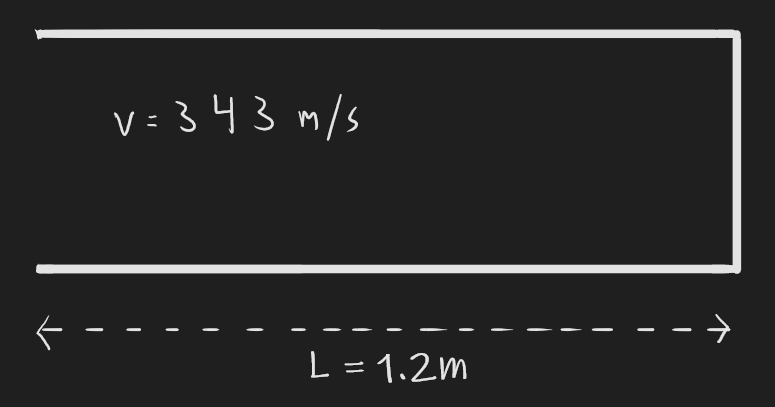 ***Q15.10) Consider a tube that is open at one end and closed at the other, as shown below. The closed end is sealed by a plunger that can be pulled out or pushed in, allowing for variance in the length of the tube. A tuning fork is placed near the opening of the tube and struck, sending sound of a certain frequency into the tube. As you lengthen the tube by pulling on the plunger, you notice that the sound is loudest (resonant) when the plunger is at certain positions along the tube. You take out a ruler and measure precisely 12cm between adjacent resonances. Find the frequency of the tuning fork.